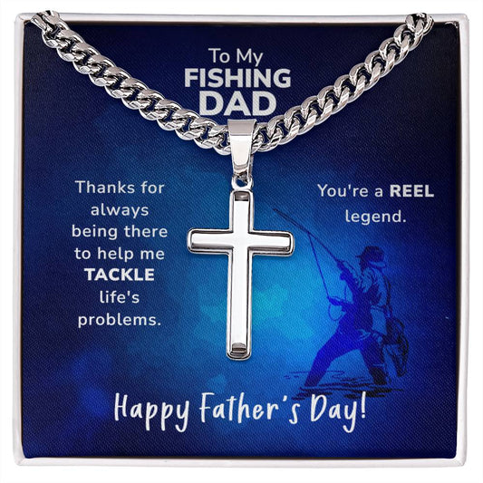You're A REEL Legend - Personalized Fishing Dad Cross Necklace