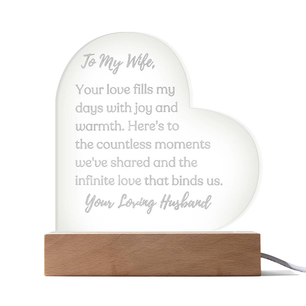 "The Infinite Love That Binds Us" - To My Wife - Acrylic Heart Plaque