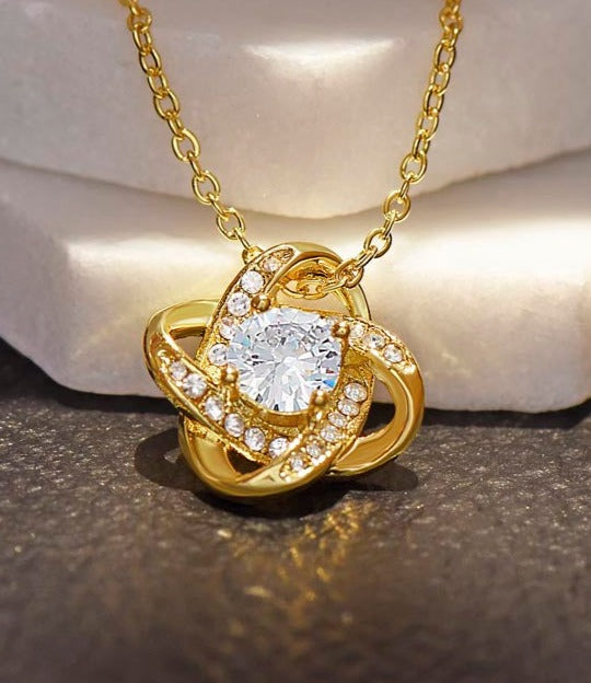 Imagine her reaction receiving this beautiful Love Knot Necklace. Representing an unbreakable bond between two souls, this piece features a beautiful pendant embellished with premium cubic zirconia crystals. Surprise your loved one with this gorgeous gift today!