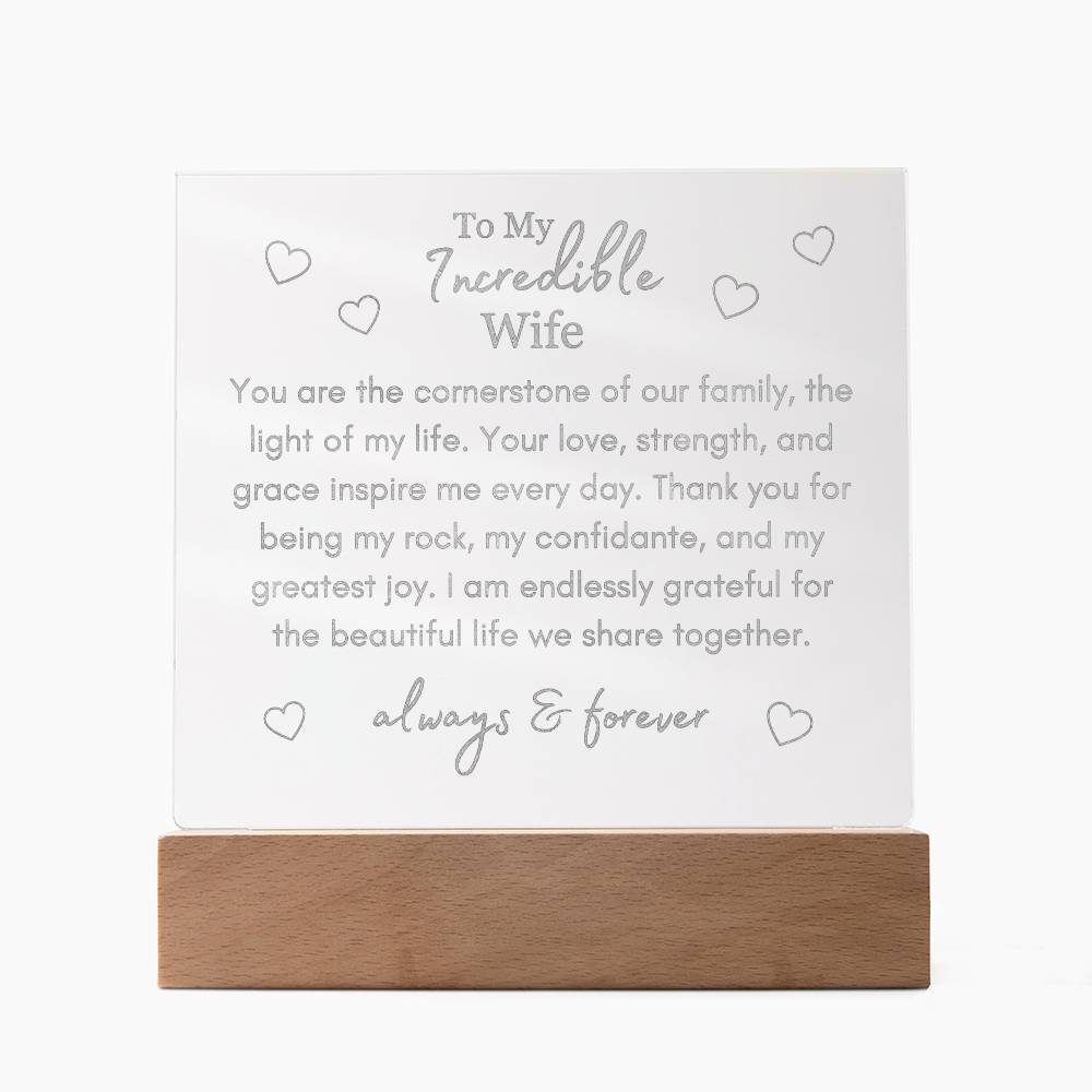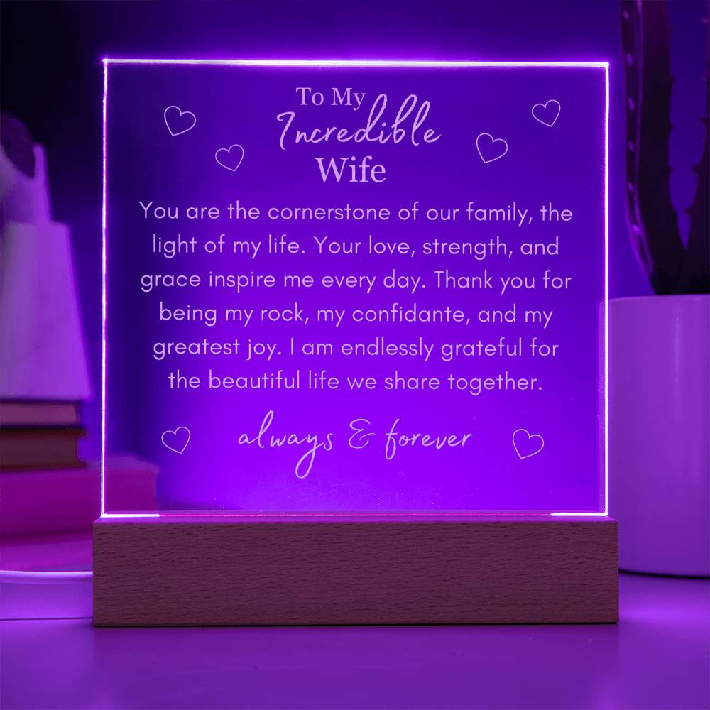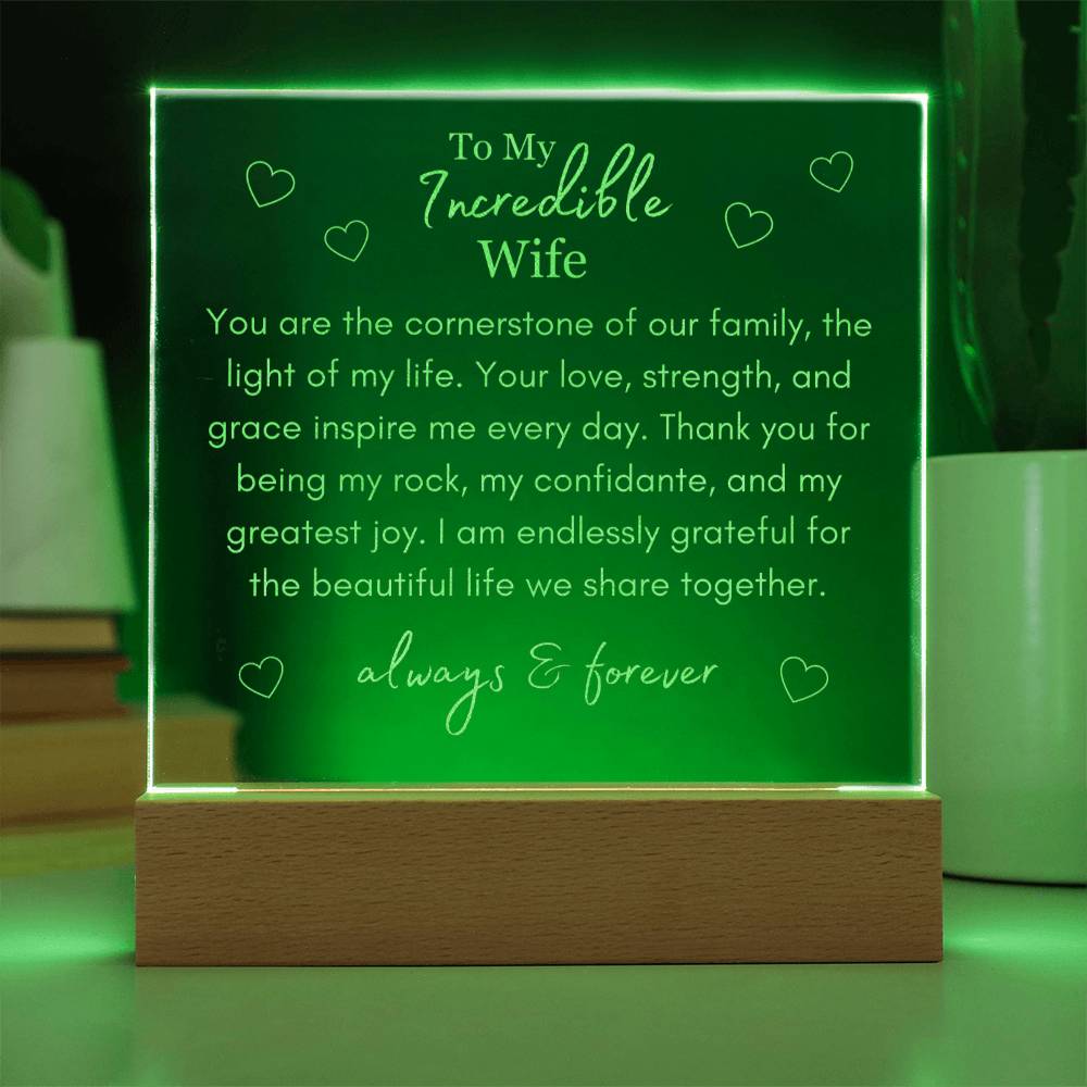 "You Are The Cornerstone of Our Family" - To My Incredible Wife - Multi-Colored LED Plaque